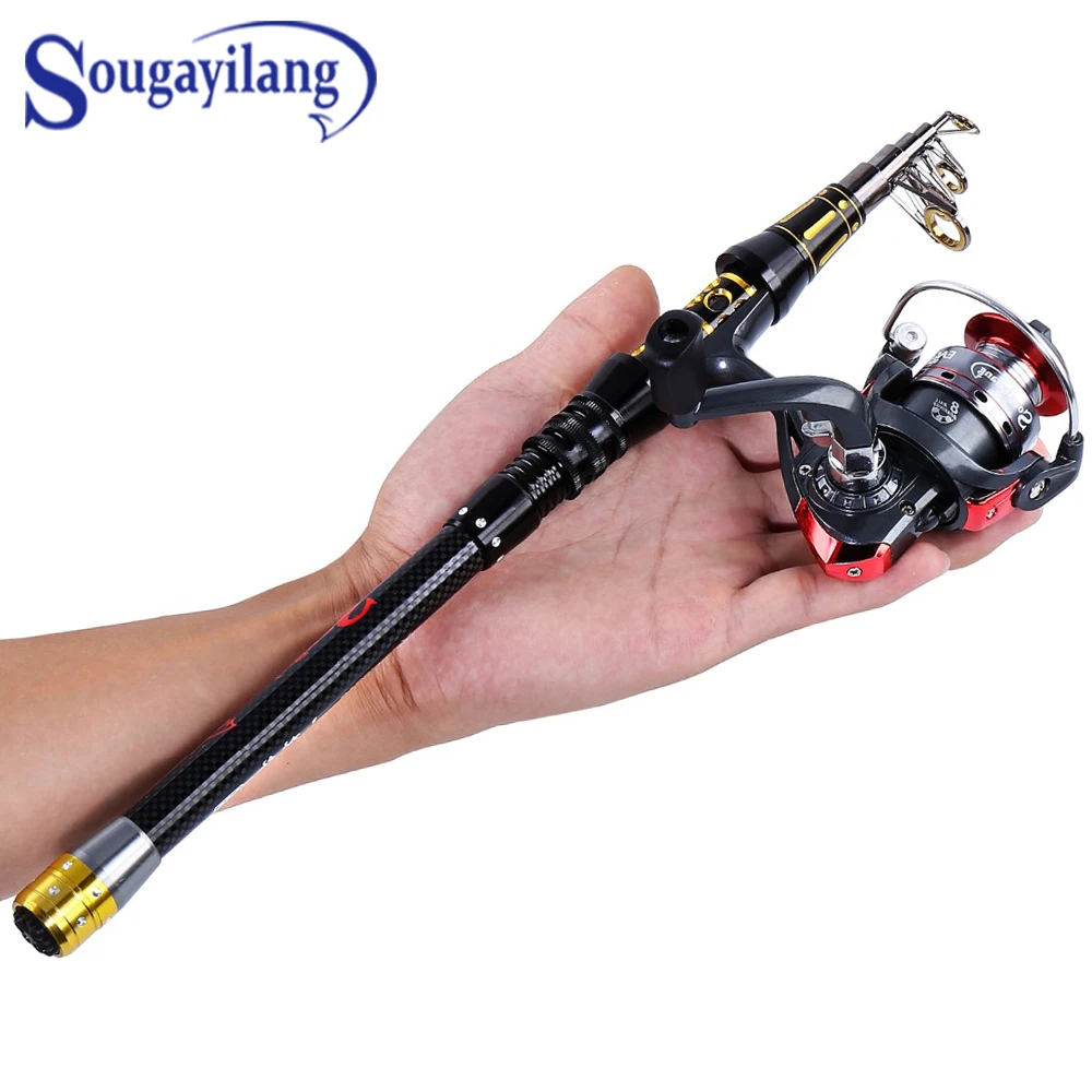 Clearance Sougayilang Portable Mini Telescopic Fishing Rod With Fishing Reel Combo Spinning Reel Carbon Pole
