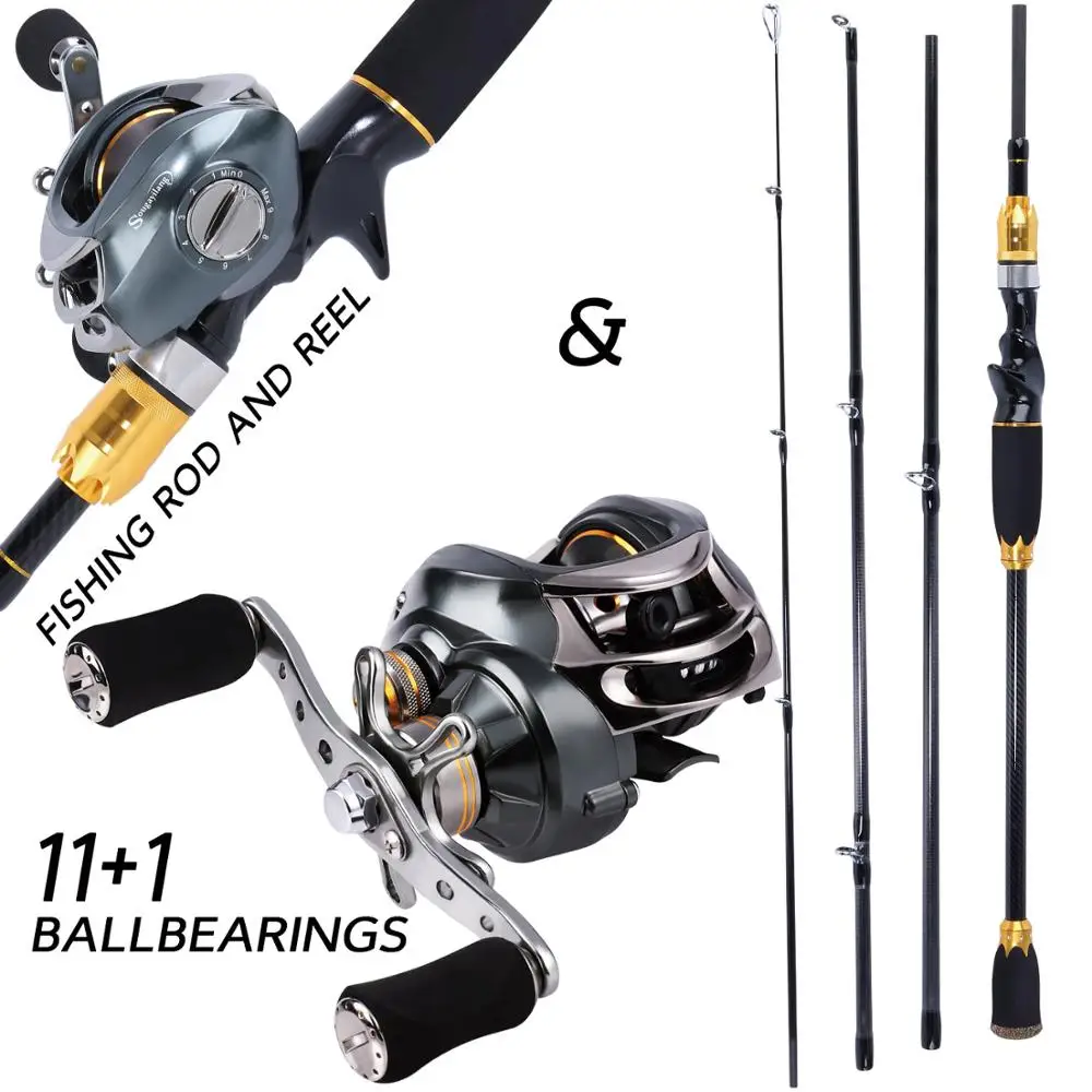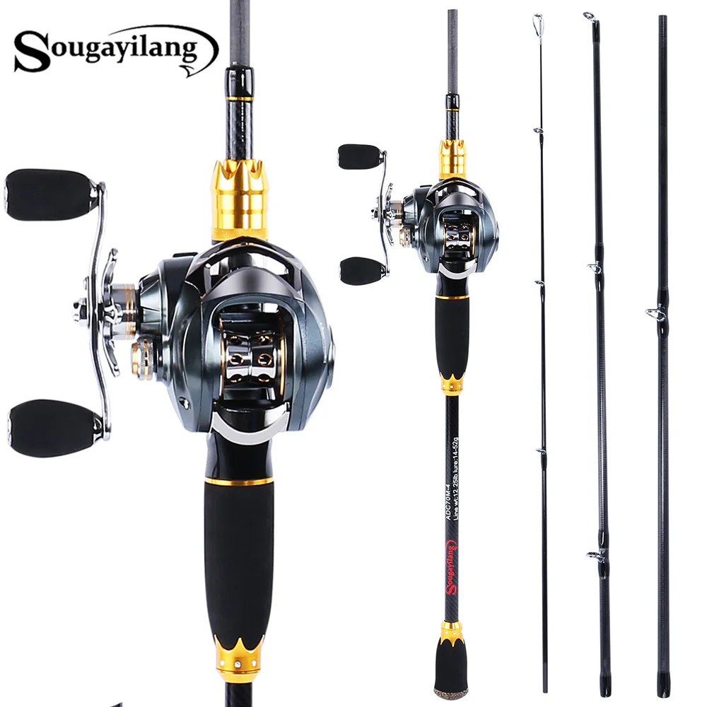 Clearance Sougayilang 1.8m 2.1m 4 Sections Fishing Rod and left/right Baitcasting Reel High quality Carbon an